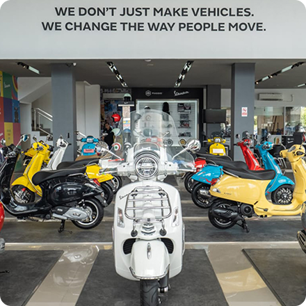 Menjadi dealer resmi Piaggio Group terbaik di Indonesia yang mengutamakan kepuasan pelanggan dan inovasi dalam layanan.